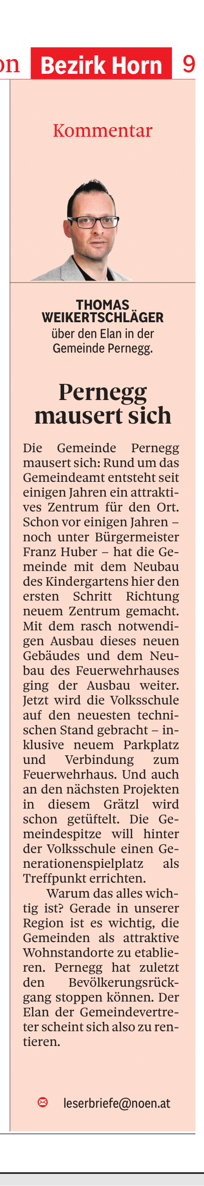 Anbei finden Sie Zeitungsartikel in Bezug zu Pernegg im Waldviertel.